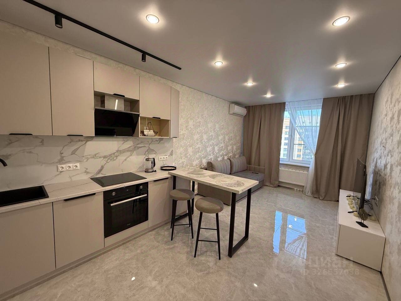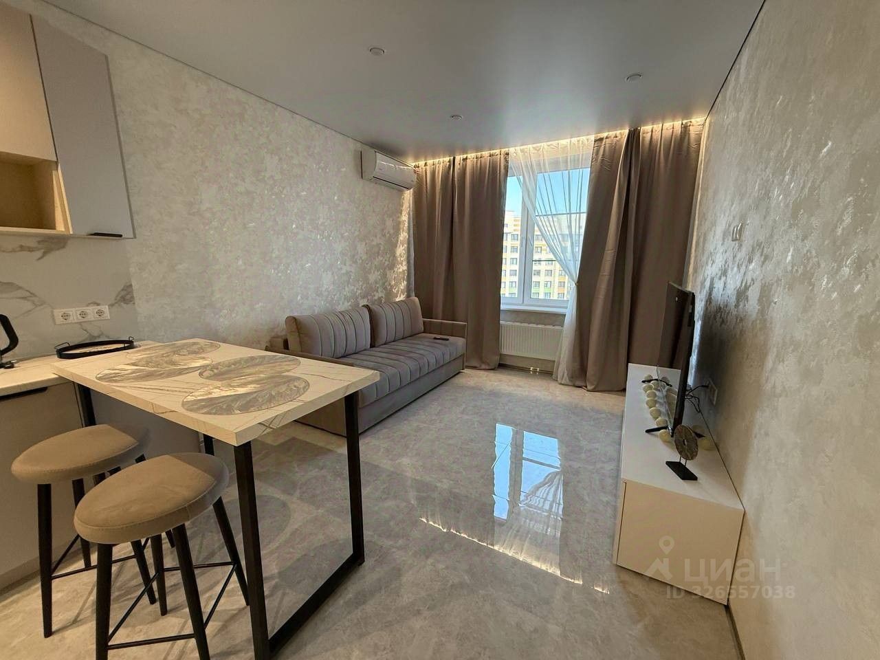 В квартире выполнен качественный ремонт, есть вся необходимая бытовая техника, есть телевизор, кондиционер, вся мебель новая.