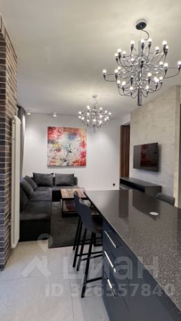Квартира состоит из просторной кухни-гостиной, изолированной спальной комнаты, санузла, кладовой и отдельной лоджии. Квартира полностью укомплектована для проживания премиальной бытовой техникой: телевизором, посудомоечной машиной, микроволновой печью, духовым шкафом, кофемашиной, электрочайником, пылесосом, утюгом и гладильной доской.