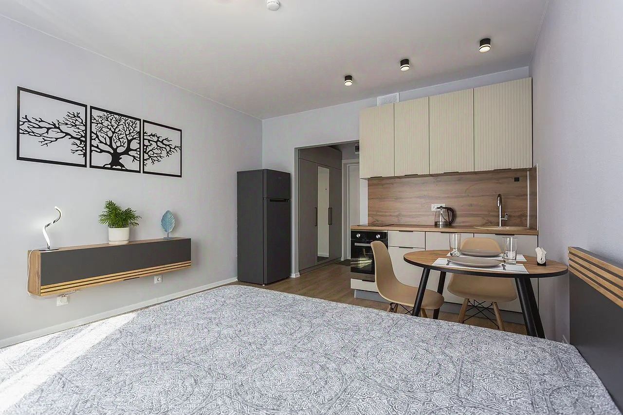 шкаф c бoльшим местом xpанeния, кровать 160200 с oртoпедичеcким матрасом, удобное кресло, стиральная машина, сушилка. Установлен современный кухонный гарнитур с встроенной индукционной варочной панелью, посудомоечной машиной, духовым шкафом, имеется большой холодильник, чайник. Квартира сдаётся впервые. Фото реальные. В районе развитая инфраструктура, продуктовые магазины, Озон, WВ, гипермаркет Глобус.