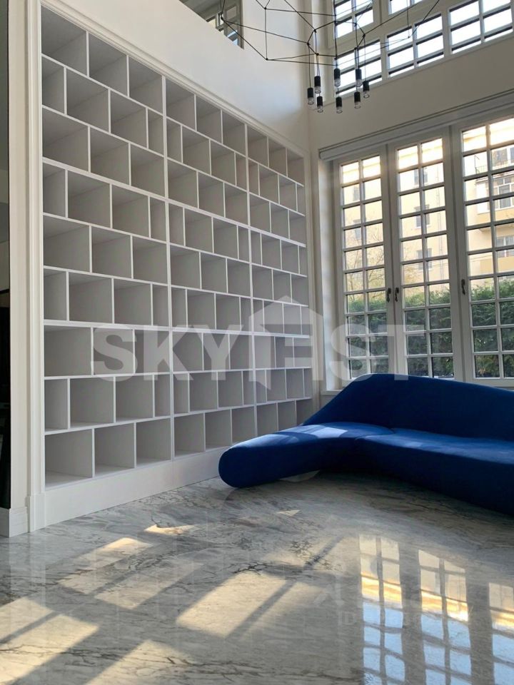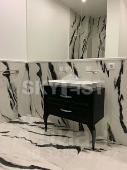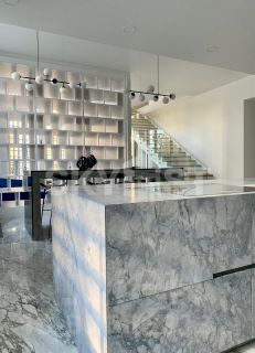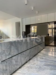 В квартире выполнена дизайнерская отделка по индивидуальному дизайн-проекту в современном стиле. Отделка выполнена из дорогих натуральных материалов в стиле Ар-деко. Зона прихожей, кухни и гостиной отделана итальянским мрамором. В комнатах уложен штучный паркет из натурального дерева. Ванные комнаты отделаны натуральным мрамором. Встроенная кухня из Италии, встроенная бытовая техника Gaggenau, в постирочных бытовая техника Miele. В зоне гостиной спроектирована винная комната. Проект винной комнаты разработан лучшими специалистами в области ресторанного бизнеса. В интерьере присутствуют предметы от известных дизайнеров. Квартира полностью меблирована и укомплектована необходимой техникой. Высокие потолки 6 метров в сочетании с панорамными окнами наполняют помещения светом и воздухом. В наличии имеются машиноместа, обсуждаются отдельно.