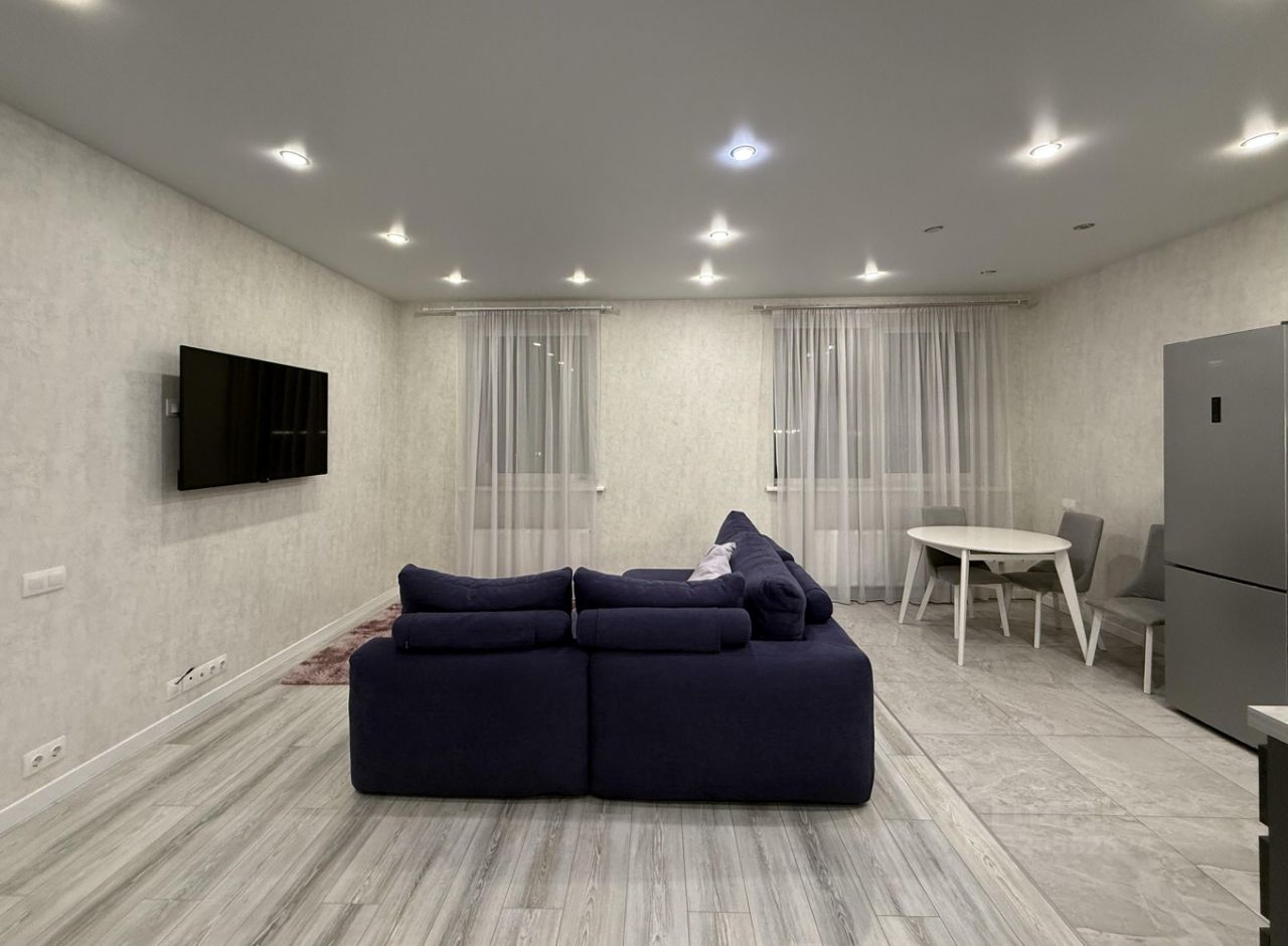 Квартира выполнена в дизайнерском стиле и полностью готова к комфортному проживанию. Просторная кухня площадью 20 кв. м оборудована всей необходимой техникой: холодильник, посудомоечная машина и стиральная машина. В каждой комнате есть мебель, а кондиционер и телевизор создадут дополнительный уют. В квартире два совмещенных санузла: один с ванной, другой с душевой кабиной, что очень удобно для семьи или компании друзей.