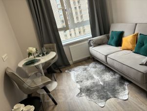- Полный набор мебели и бытовой техники (холодильник, индукционная варочная поверхность, духовка, посудомоечная машина, вытяжка, микроволновка, умный чайник, телевизор, стиральная машина, кондиционер, пылесос, утюг)