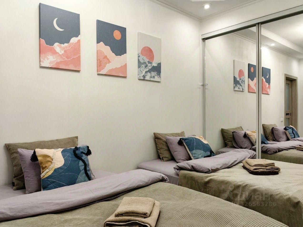 Чистое постельное белье и полотенца (для тела, для лица, для ног) для каждого гостя