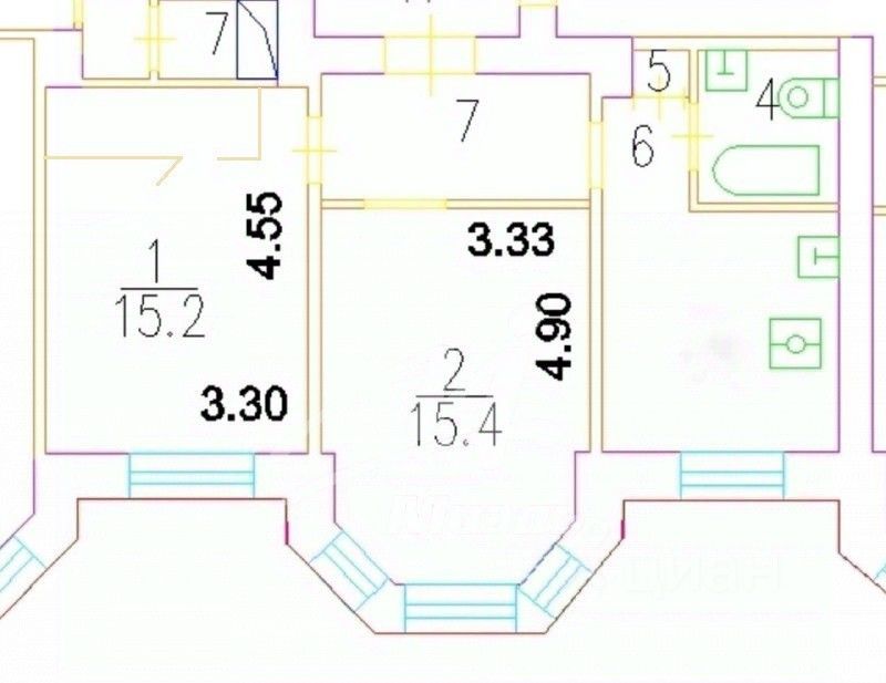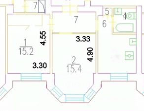Высота потолков 3 метра. В гостиной эркер. В спальне вместительная гардеробная. Изолированная планировка. Площадь кухни 10 кв.м, площадь комнат - 15 и 12 кв.м, площадь гардеробной комнаты 3 кв.м.