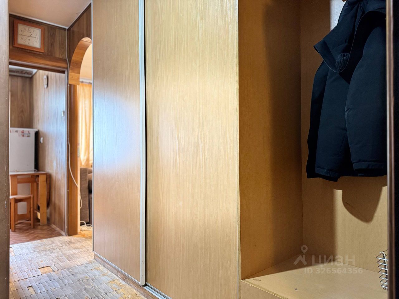 В коридоре: гардероб с вешалкой и полками