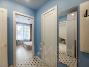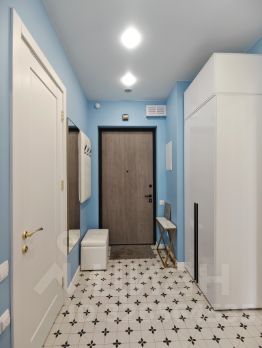 В прихожей имеется настенная вешалка для верхней одежды, вместительный шкаф, большое зеркало и удобный пуфик.