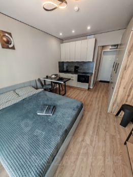 Формат: светлая студия с продуманной планировкой, достаточным местом для хранения и зональным освещением. Этаж: 13-й, отличный вид во двор, много естественного света. Полностью готова к проживанию: заезжай и живи, ничего докупать не нужно.