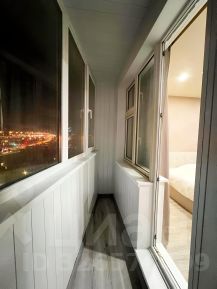 Балкон застеклён, аккуратно отделан и может использоваться как рабочая зона или место для отдыха.