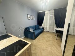 Удобный двуспальный диван, вместительный шкаф, хранение в коридоре, кухня с техникой, телевизор, стиральная машина, просторная лоджия.