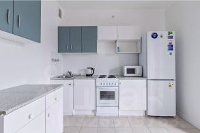 Всё для жизни на кухне есть вся необходимая техника (плита, холодильник, микроволновка, чайник, посуда), чтобы приготовить простой завтрак или ужин.