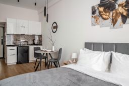 Для проведения досуга есть wi-fi, телевизор (smаrt-tv). В вашем пользовании также холодильник, электрический чайник, электроплита, СВЧ, стиральная машина, фен, утюг (+ гладильная доска и сушилка для одежды). В апартаментах имеется кондиционер