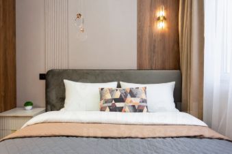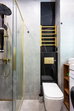 В квартире сделан дизайнерский ремонт. Функциональная планировка. Много места для хранения. Оборудована всей необходимой техникой: есть проточный водонагреватель (на случай отключения горячей воды), варочная панель, большой встроенный холодильник, духовой шкаф, вытяжка, кондиционер, стиральная машина, телевизор. Высокоскоростной интернет, Wi-Fi.