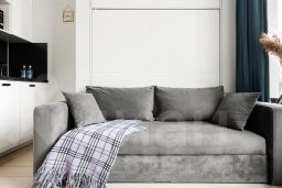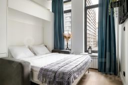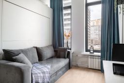 В квартире имеется одно двуспальное комфортное место - 160х200, которое представляет собой полноценную кровать - трансформер с удобным матрасом, опускается из ниши. В собранном виде кровать компактна, что экономит нам полезную площадь и место превращается в большую гостиную зону. Для проведения досуга есть wi-fi, телевизор (smart-tv) и книги. В вашем пользовании также холодильник, электрический чайник, электроплита, СВЧ, кофемашина, посудомоечная машина, стиральная машина, фен, утюг (+ гладильная доска и сушилка для одежды). А для комфортного сна есть кондиционер!