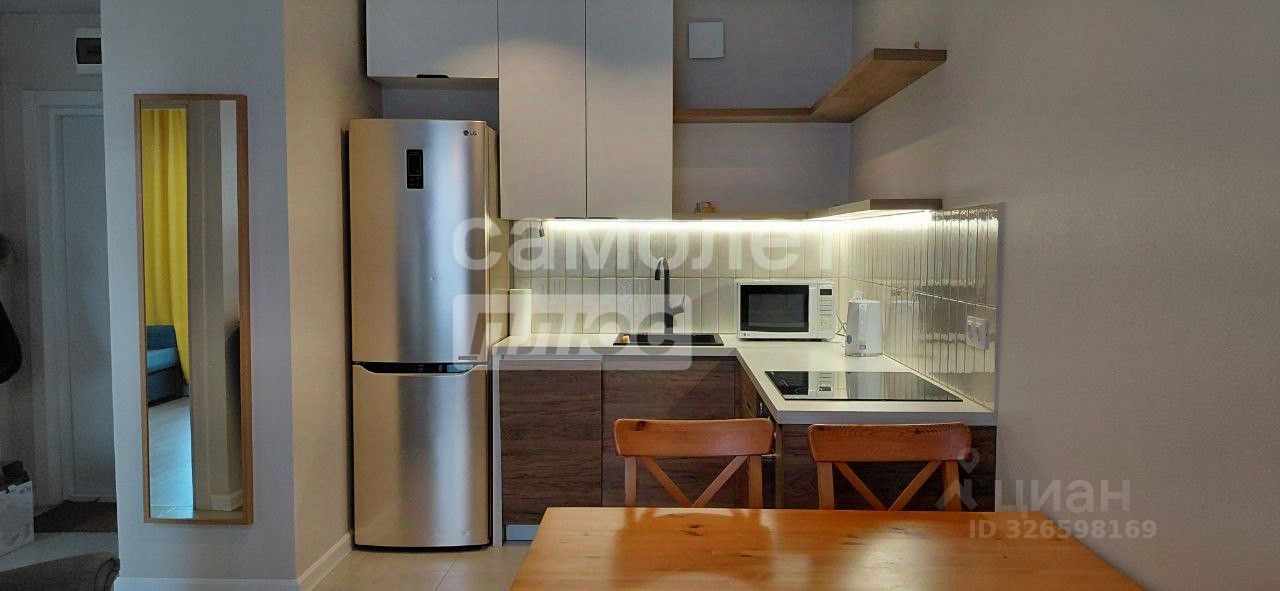 - Кухня-гостиная - установлен кухонный гарнитур, встроенная посудомоечная машина, индукционная варочная панель, духовой шкаф, холодильник, кондиционер. Обустроенная гостинная зона -удобный диван (возможно использовать как спальное место), телевизор.