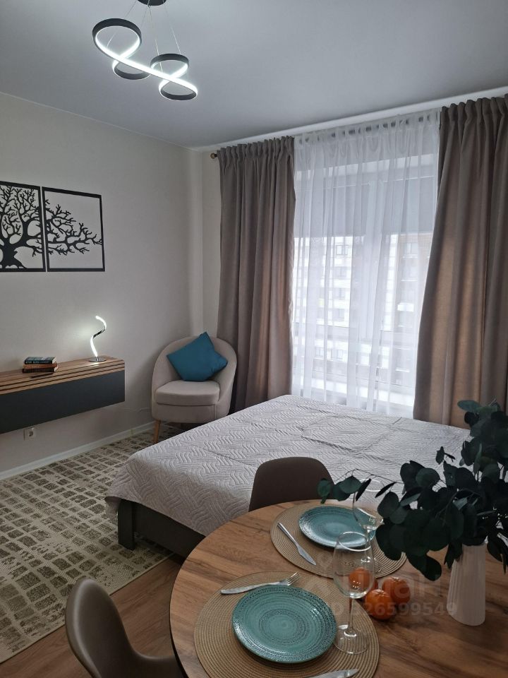 В квартире есть всё необходимое для комфортного проживания: современная мебель на кухне и в комнате, а также вся необходимая техника — кондиционер, холодильник, посудомоечная и стиральная машины. Санузел оборудован душевой кабиной. Окна выходят во двор, поэтому в квартире тихо и спокойно.