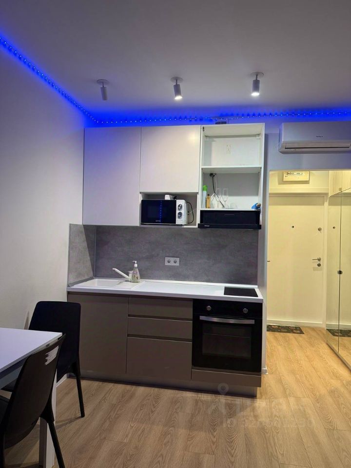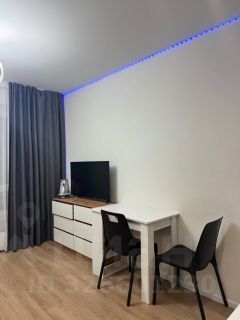 В квартире сделан евроремонт, в интерьере использованы современные материалы и решения. Студия полностью меблирована: в комнате и на кухне есть вся необходимая мебель. Из техники в вашем распоряжении кондиционер, холодильник, телевизор и стиральная машина. Ванная комната оборудована душевой кабиной.
