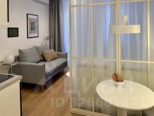 Удобная студия с современным ремонтом , поделена на зоны кухни, столовой, спальни, гостиной.
