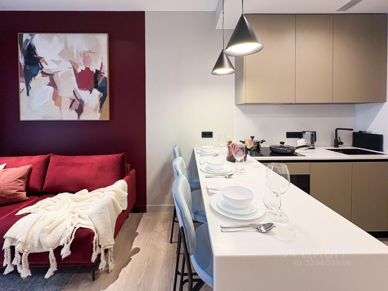 - кухонная зона оборудована необходимой бытовой техникой: варочная панель, духовая печь, свч, посудомоечная машина, вытяжка, сушилка для посуды. Обеденный стол сервирован на 3 персоны, что позволит принимать трапезы с гостями;