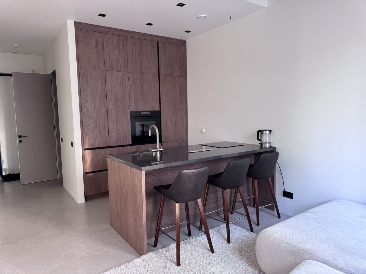 В квартире есть все необходимое для комфортного проживания. Просторная кухня оборудована современной качественной мебелью и техникой: холодильник, посудомоечная и стиральная машина.
