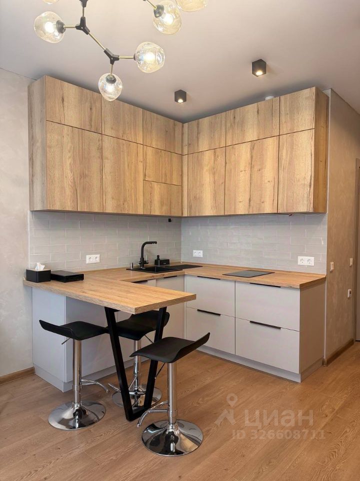 кухонный гарнитур с барным столом и стульями,