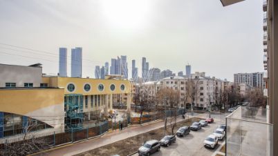 Светлая квартира с 1-й спальней общей площадью 45 м² в комплексе премиум-класса Lucky. Выполнена современная премиальная отделка, интерьер оформлен в лаконичных светлых тонах. Планировка: кухня-гостиная с обеденной зоной, уютная спальня с небольшим открытым балконом, ванная комната, постирочная, прихожая. Квартира укомплектована современной мебелью, кухня оснащена встроенной бытовой техникой. Установлена система кондиционирования, стиральная и посудомоечная машина. Благодаря панорамным окнам пространство наполнено светом. Из квартиры открывается вид на башни делового центра "Москва-Сити".