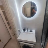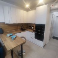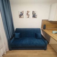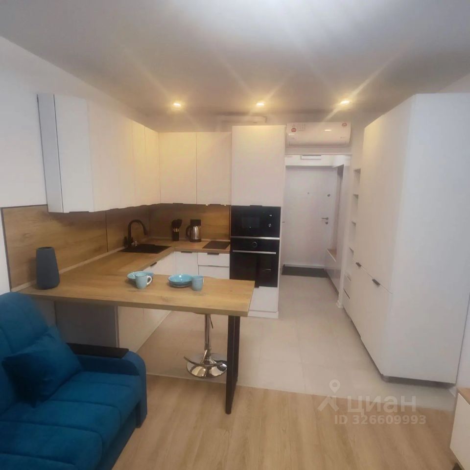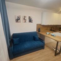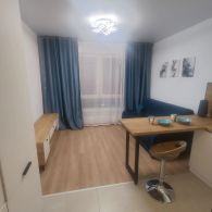 Квартира выполнена в стиле евроремонт, что придаёт ей современный и свежий вид. В студии есть вся необходимая мебель как в комнате, так и на кухне. В кухонной зоне установлены холодильник и посудомоечная машина, а также кондиционер и телевизор для вашего удобства. Вся кухонная техника от производителя Gorenge, также кухня оборудована посудой для приготовления пищи. Санузел совмещённый, оснащён душевой кабиной и стиральной машиной. Окна выходят на улицу, поэтому в квартире всегда светло и уютно.