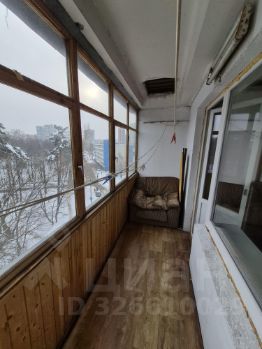 В квартире изолированные комнаты, большая кухня и огромная застеклённая лоджия с двумя креслами.