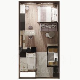 - Формат студии с продуманной планировкой и выделенной гардеробной, много шкафов и мест для хранения.