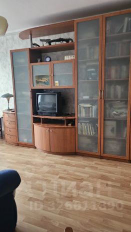 В гостинной большой удобный раскладной диван, стенка для одежды и книг.