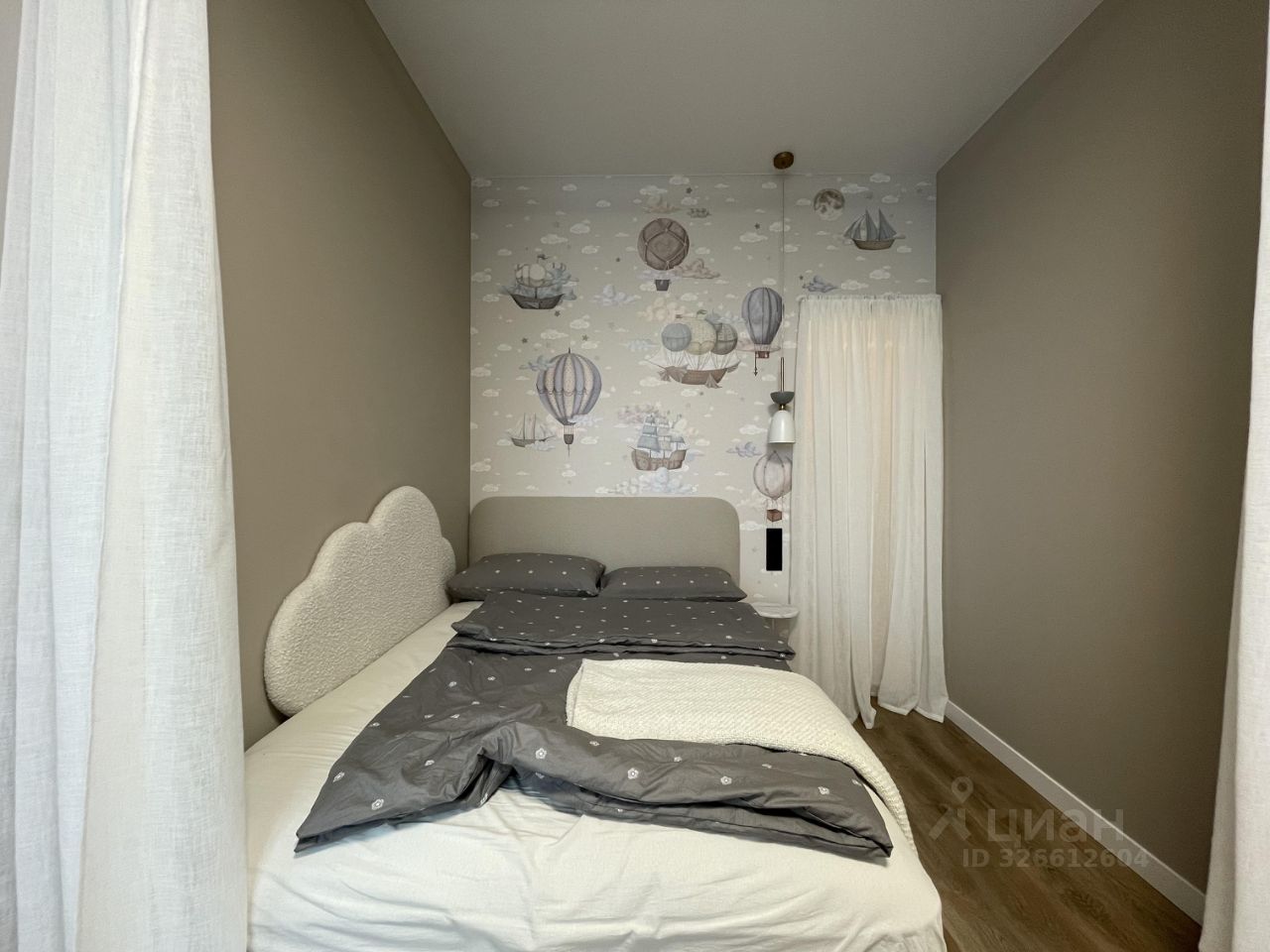 Площадь: 35,2 м2 (комната — 20 м2 (разделённая на спальню, гардеробную и зону гостинной, кухня — 8 м2).