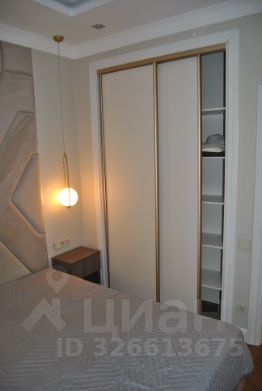 В квартире роскошная кухня гостиная и спальня с просторным гардеробом.