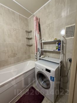 В ванной комнате установлена современная стиральная машина.
