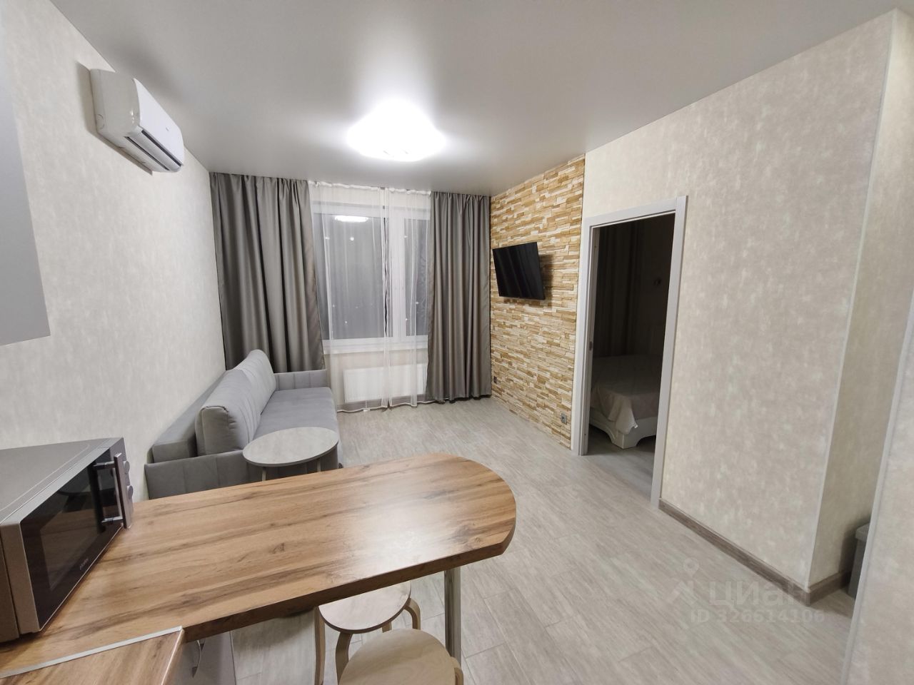 Очень тёплая, теплые полы благодаря горизонтальной разводке отопления (без затрат на электричество). Современная техника, кондиционер с функцией обогрева и управлением через приложение на смартфоне, люстры с пультом и возможностью управлять через смартфон.