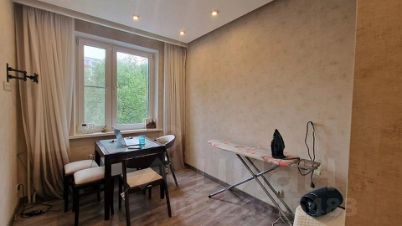 Общая площадь составляет 60 квадратных метров, квартира расположена на 4 этаже 9-этажного панельного дома, построенного в 1969 году. Высота потолков 2,5 метра, окна выходят во двор, что обеспечивает тишину и спокойствие.