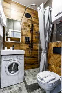 — Комфорт: кровать, мини-кухня, бытовая техника (стиральная, микроволновка).