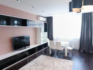 В квартире выполнен дизайнерский ремонт, который создаёт атмосферу уюта и комфорта. Здесь есть всё необходимое для комфортного проживания: современная мебель на кухне и в комнатах, кондиционер, холодильник, посудомоечная и стиральная машины, а также телевизор. Ванная комната оборудована ванной. Квартира имеет две больших лоджии, где можно наслаждаться видом и свежим воздухом. Санузлы в квартире — один совмещённый и один отдельный. Установлен бойлер.
