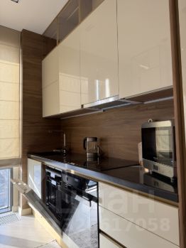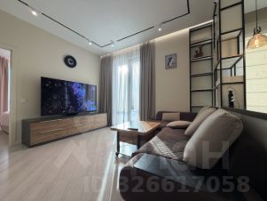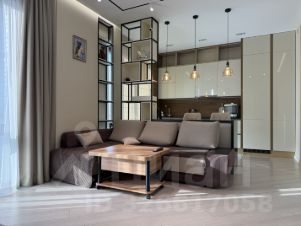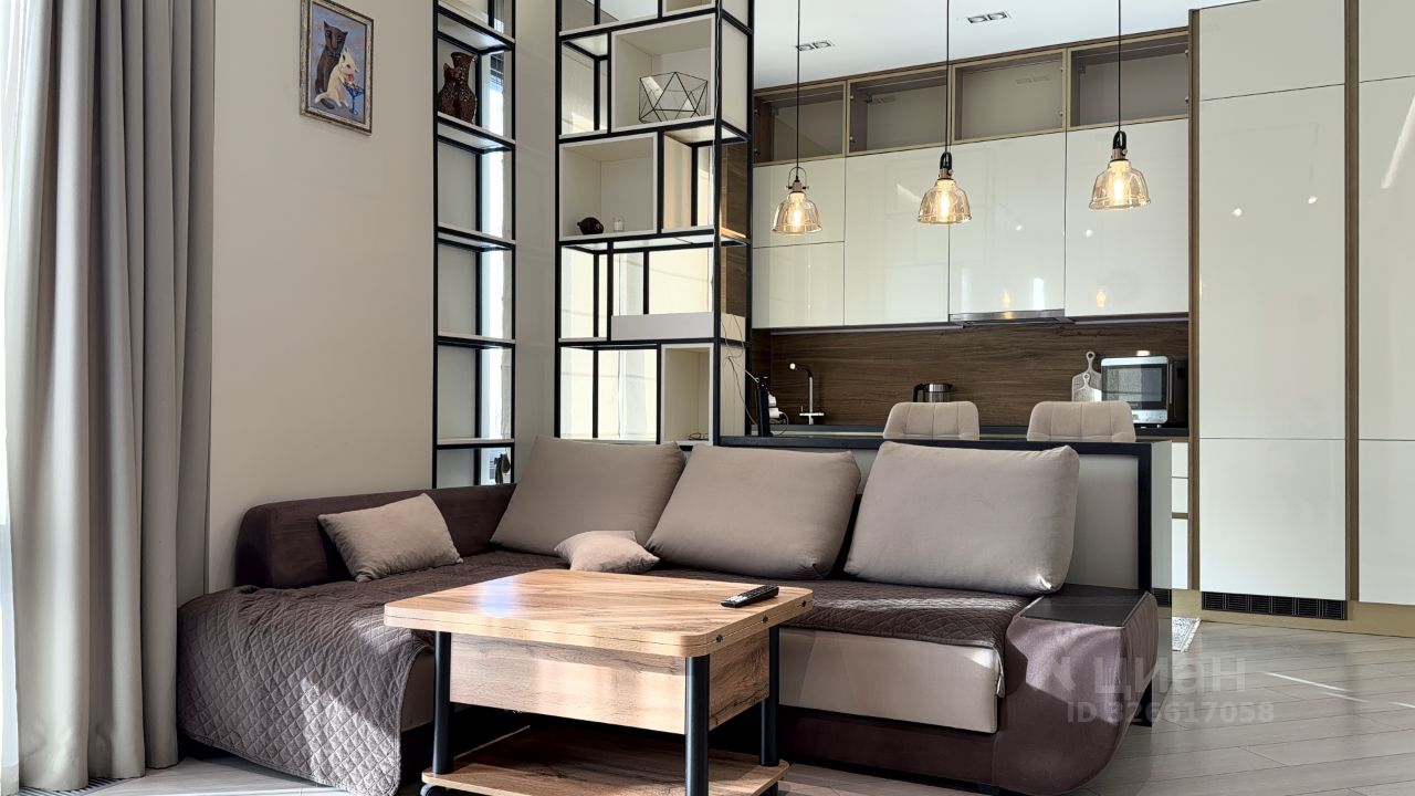В квартире сделан дизайнерский ремонт с использованием качественных материалов. В наличии вся необходимая мебель и техника: кондиционер, холодильник, посудомоечная и стиральная машины, телевизор. На кухне и в комнате уже есть всё, что нужно для комфортного проживания. В квартире два санузла: один совмещённый и один отдельный, в ванной комнате установлена ванна.