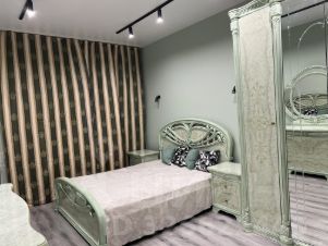 Квартира оснащена всем необходимым для комфортного проживания. Сделан евроремонт, установлена современная мебель как на кухне, так и в комнате. В наличии вся необходимая техника: холодильник, телевизор и стиральная машина. В ванной выделена просторная душевая зона. Окна выходят на улицу, что гарантирует хорошее естественное освещение.