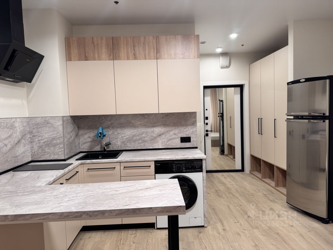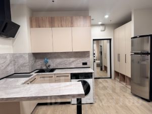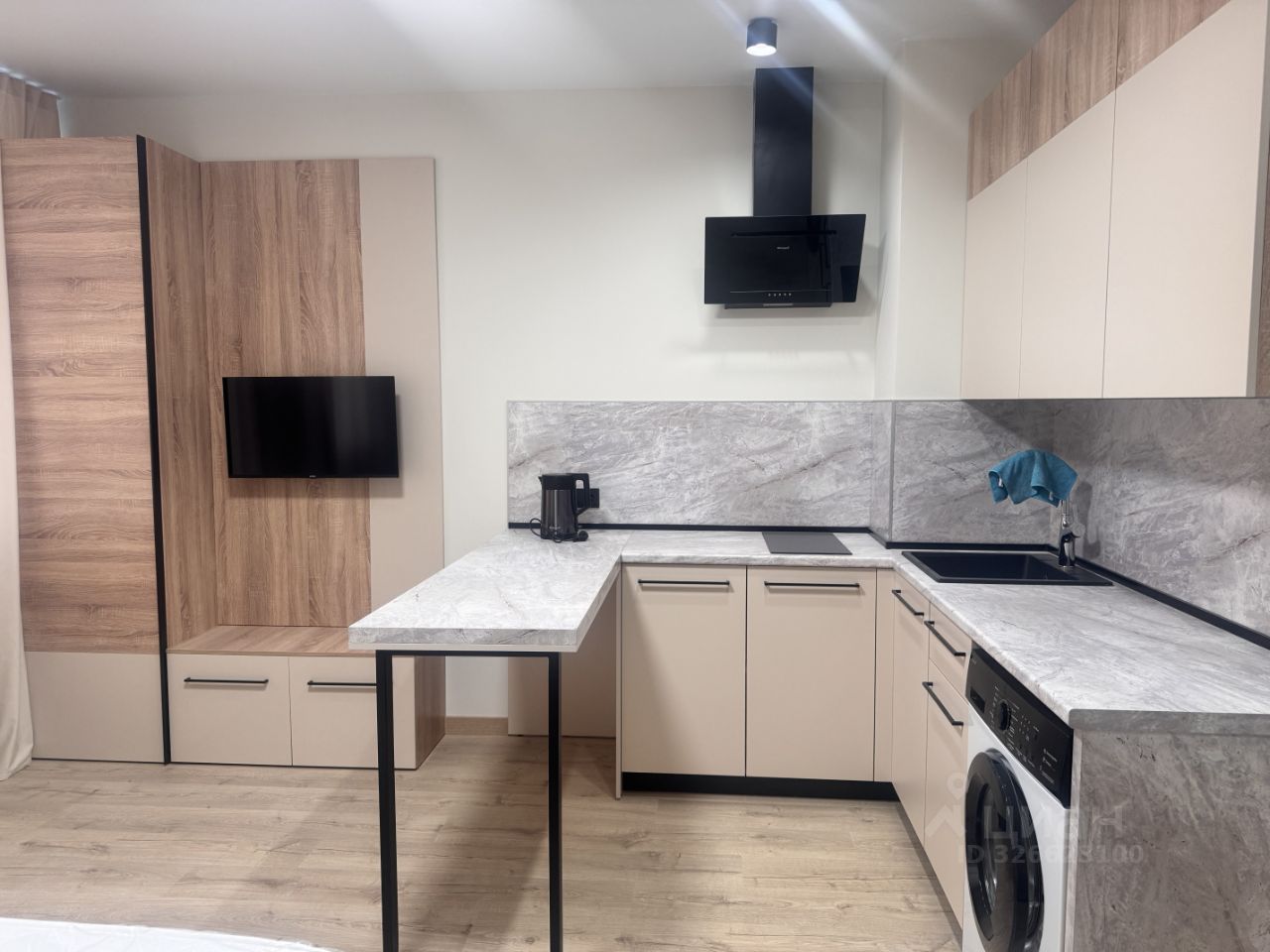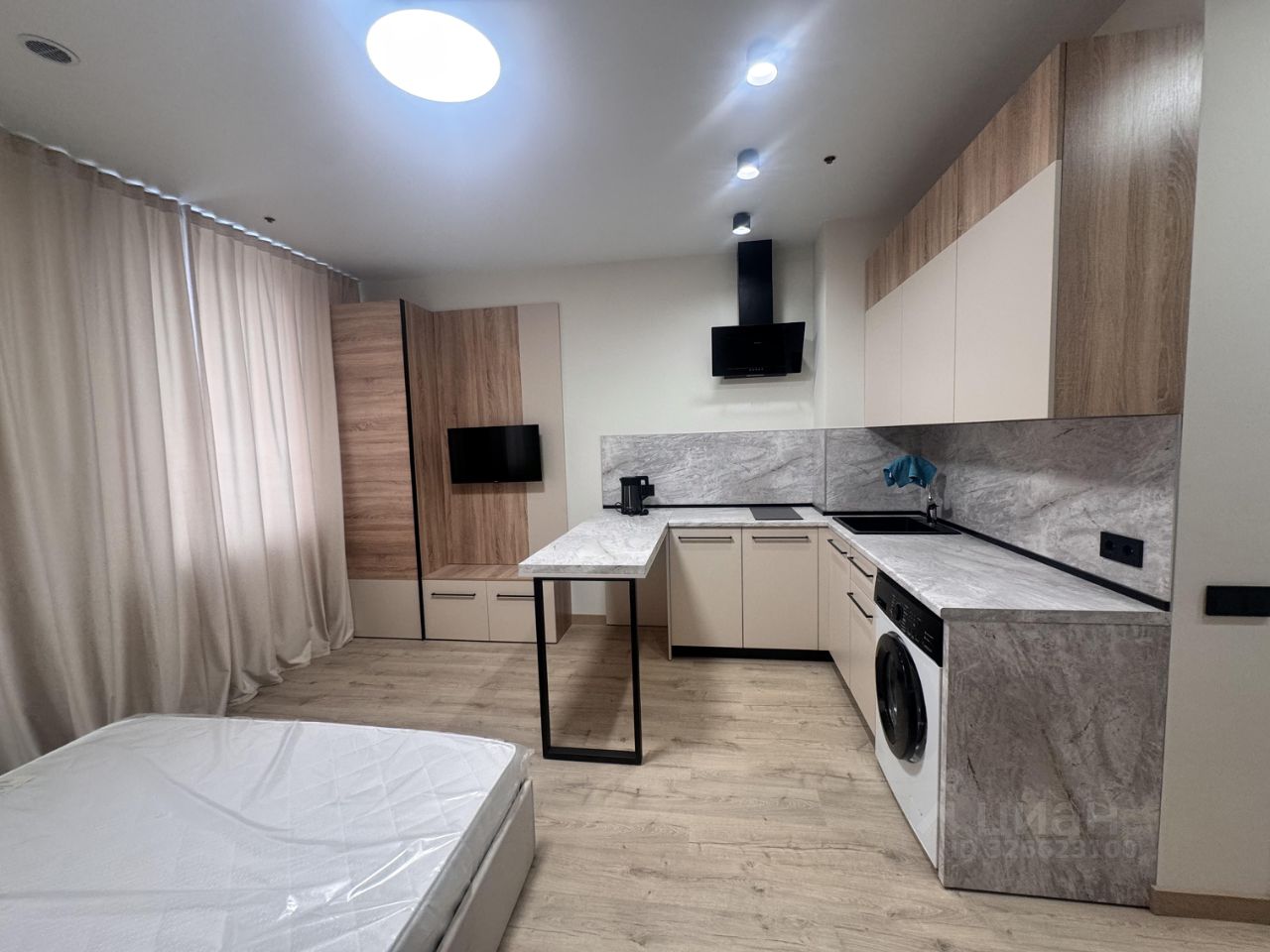 В квартире есть всё, что нужно для жизни: удобная мебель на кухне и в комнате, современный холодильник, телевизор и стиральная машина. Планировка студии продумана до мелочей, а ванная комната оборудована полноценной ванной, что особенно приятно после долгого дня.