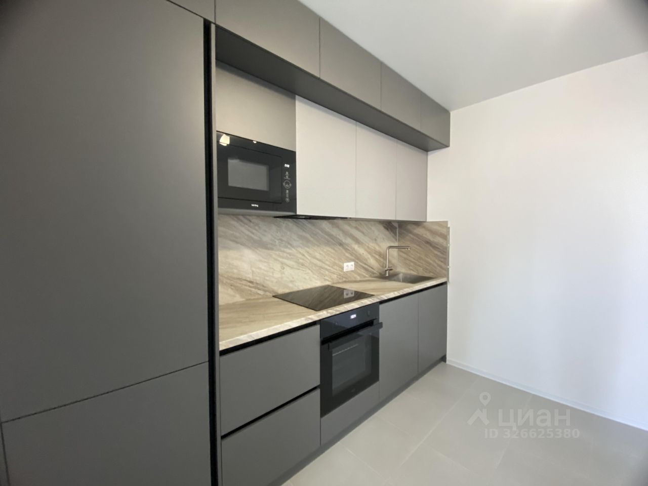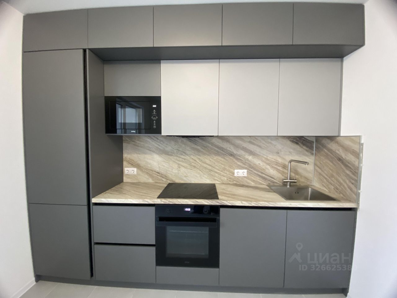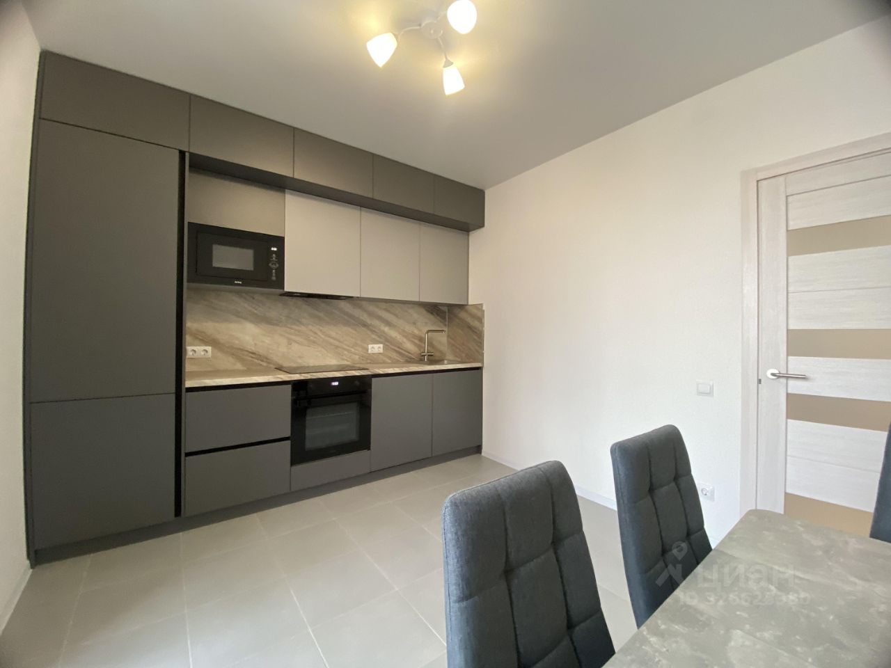 Кухня оборудованная новой бытовой техникой, посудомоечная машина, микроволновая печь, варочная панель, вытяжка, духовой шкаф, встроенный холодильник.