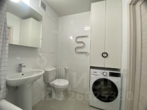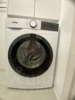 Ванная комната оборудована стиральной машинкой.