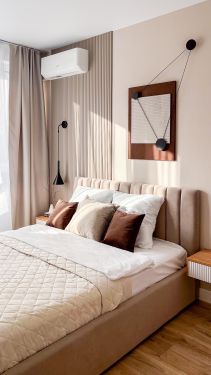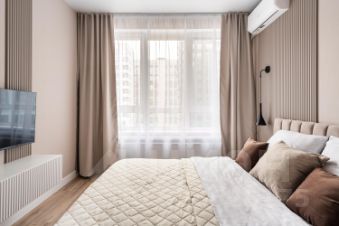 Квартира с дизайнерским ремонтом, оборудована всем необходимым для комфортного проживания. На кухне имеется современная мебель и вся необходимая техника: холодильник, посудомоечная машина. В квартире также есть кондиционер, телевизор и стиральная машина. Ванная комната оснащена ванной. Совмещённый санузел выполнен в современном стиле.