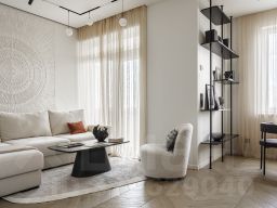 ЖК символ сдается просторная квартира с авторским ремонтом. Интерьер выполнен в нейтральной цветовой гамме создающий фон для отдыха и комфорта. Открытое пространство кухни гостиной с большим потоком естественного освещения, имеет акцентную стену с барельефом из гипса и подсветкой. Диван Дантон Хоум раскладной и местом хранения.