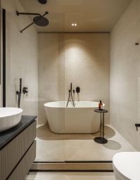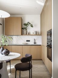Кухня изготовлена из шпона, столешница кварцевый агломерат, полное оснащение техникой ( п/м, микроволновка, духовка, варочная панель индукция, угольная вытяжка). Функциональная планировка мастер блока: спальня, гардеробная, ванная комната с душем и полной комплектацией необходимых предметов мебели и аксессуаров. Также имеется гостевой санузел с постирочной ( стиральная машина) В квартире предусмотрен современный подход к освещению с интересным сценарием. в отделке использованы только качественные материалы: покрытие Пола штучный паркет Файнекс в укладке Французская елка, стены окрашены краской Ланорс, канальное кондиционирование скрытого монтажа с системой управления по каждому помещению.