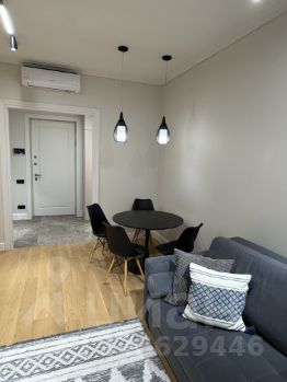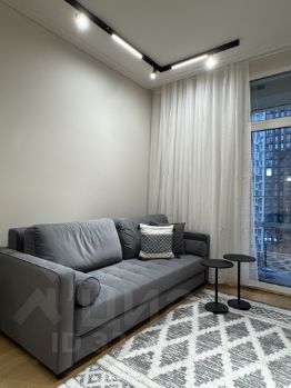 - Гостиная - совмещенная с кухней, полностью мебелирована, с большим телевизором 55 дюймов. Выход в лоджию с панорамными окнами.