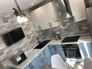 Всё для комфортной жизни: от всевозможной техники, мебели до бытовых мелочей (духовая печь, варочная панель, микроволновая печь, холодильник, вытяжка, 2 телевизора, утюг, чайник, кондиционер, пылесос)