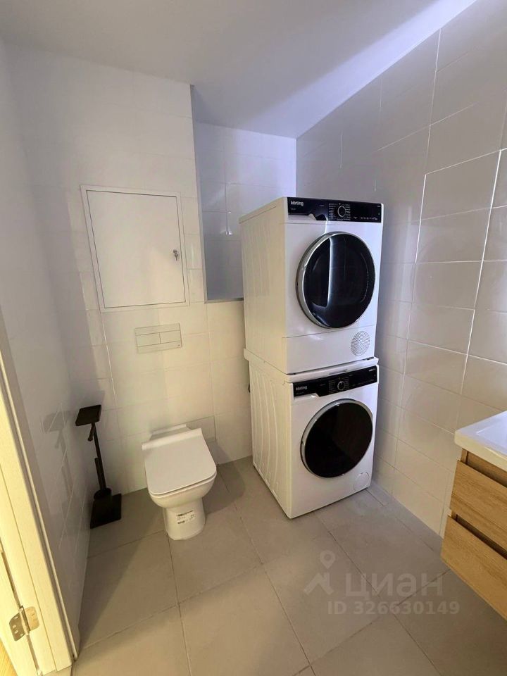 Укомплектована всей необходимой техникой (холодильник, стиральная и сушильная машина, посудомоечная машина, духовка, индукционная варочная поверхность) и мебелью (шкаф в прихожей, кухня и шкаф в спальне мебельной фабрики Анонс; кровать, матрас, прикроватные тумбы и диван в гостиной для сна Орматек)
