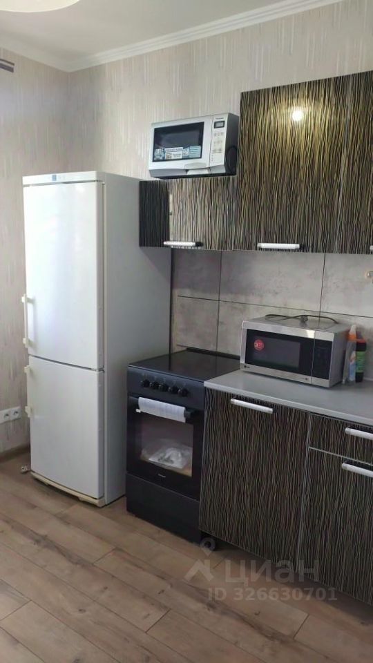 Кухня оборудована: мебель, холодильник, электроплита с духовкой, микроволновая печь