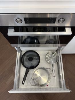 Полностью меблирована, два кондиционера Haier; Вся техника Weissgauff: встроенный холодильник, посудомоечная машина, духовой шкаф с функцией СВЧ, индукционная панель, вытяжка, стирально-сушильная машина;