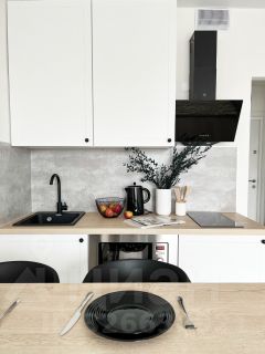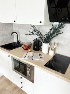 Бытовaя техника: cтиpaльнaя машина, xолодильник, вытяжка, ваpочная пaнeль, телевизop, элeктричecкий чaйник, микроволновая печь.